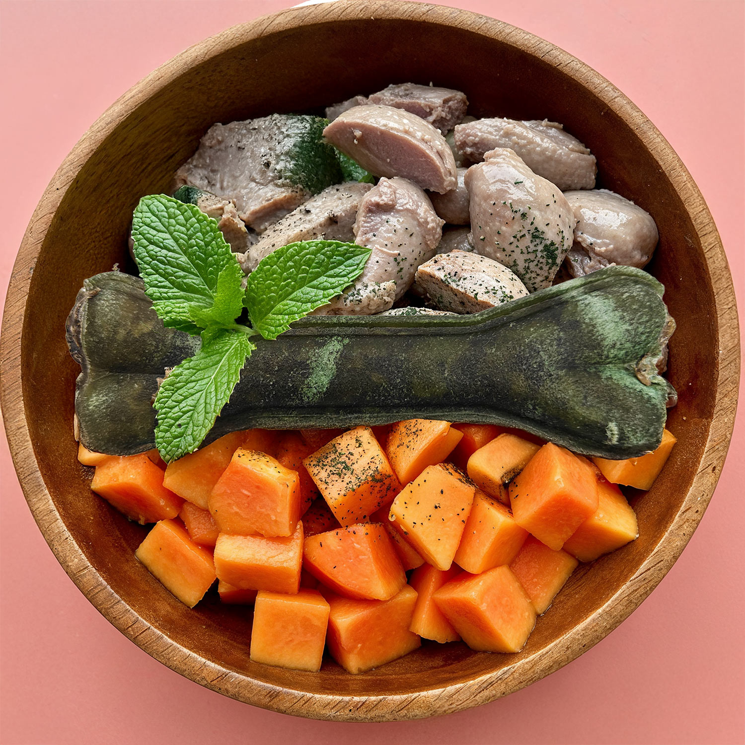 Mięta naturalnie odświeża oddech psa, a papaja wspomaga trawienie, redukując wzdęcia i uczucie ciężkości. FRESH BITE BONE to więcej niż przekąska – to lekkość i świeżość zamknięta w kości.