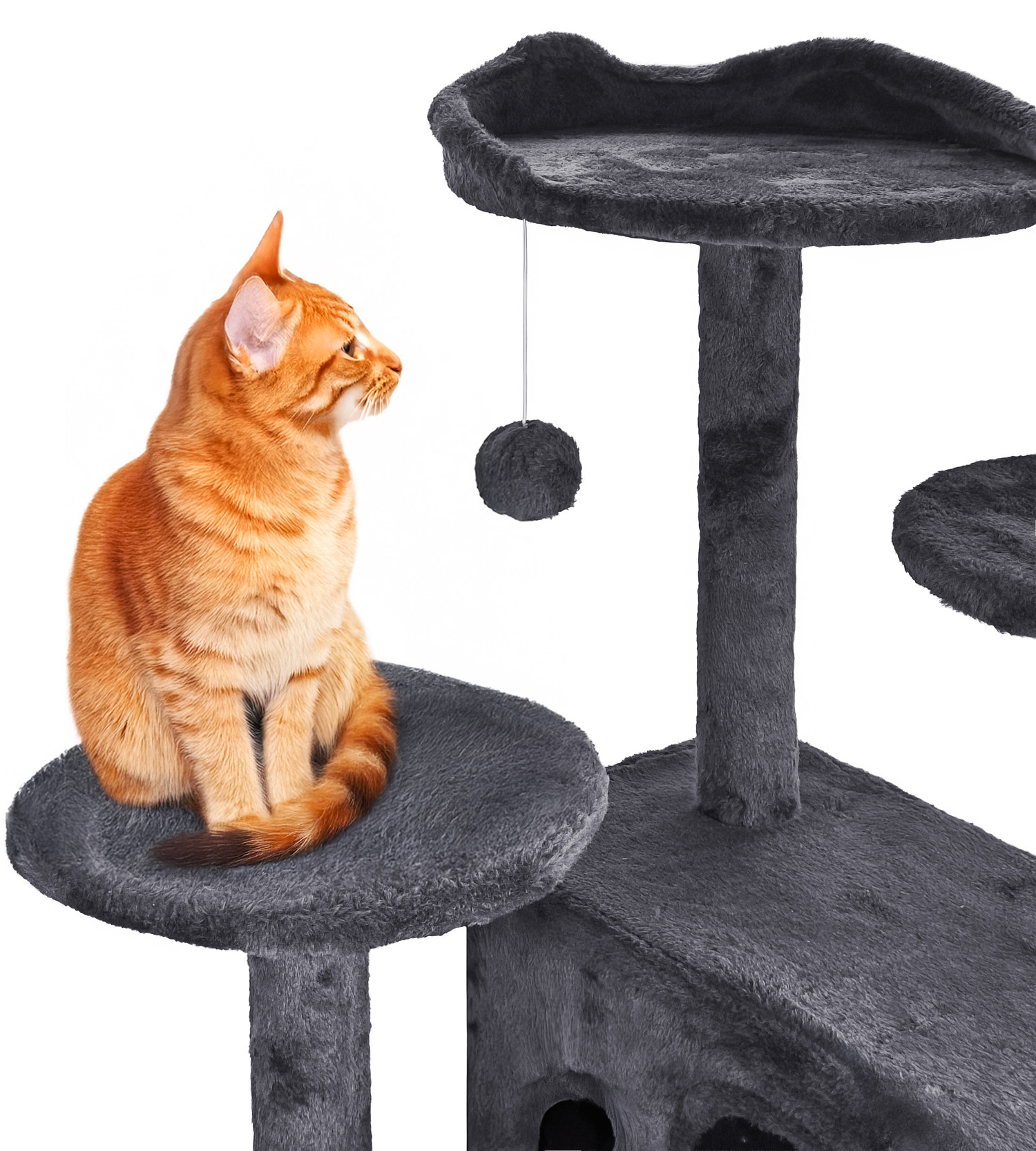 Drapak dla kota, stabilny, wysoki, 7 poziomów, legowisko ciemnoszary 138cm