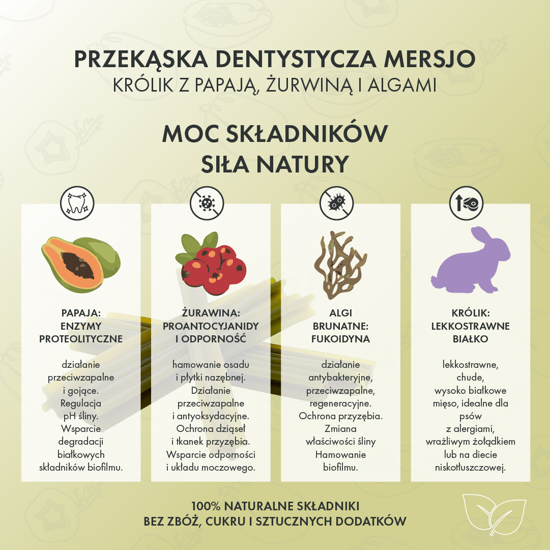 Mersjo Dental Sticks – Królik z Algami Brunatnymi, Żurawiną i Papają