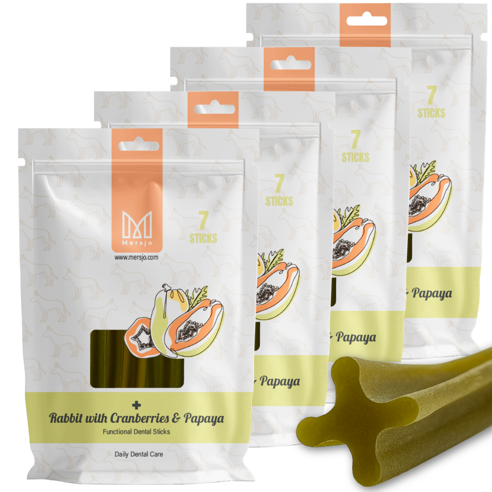 Przekąska stomatologiczna dla psów Mersjo Dental Sticks - królik z papają i żurawiną (28 sticków)