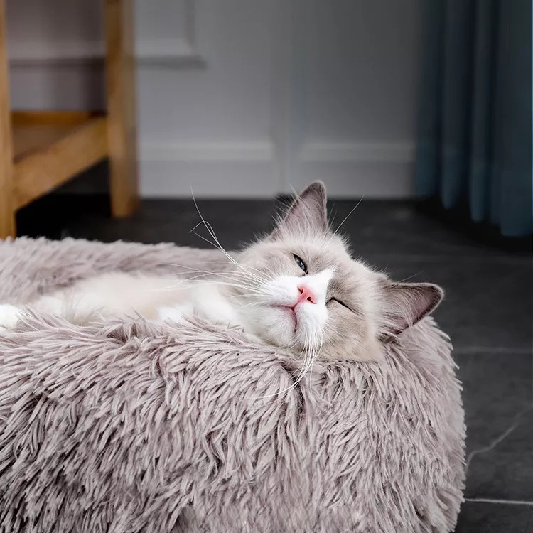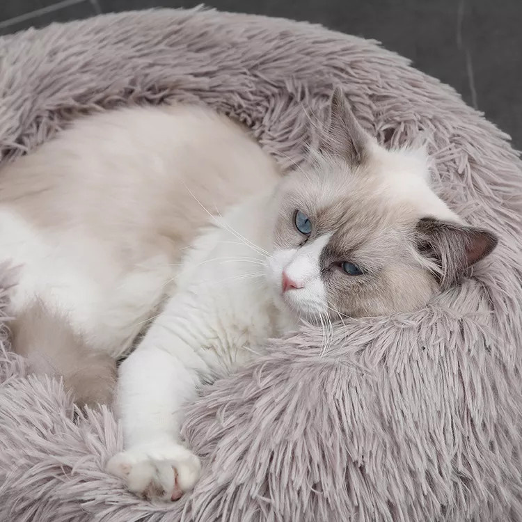Legowisko okragłe pluszowe dla zwierząt 60cm szare